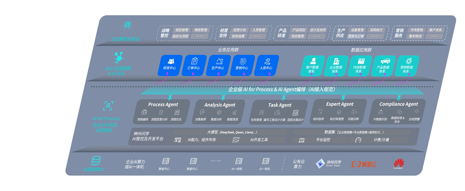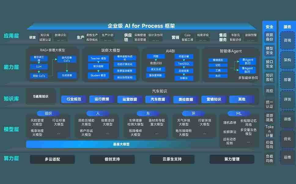 端到端的一站式AI工作空间深度融合了从企业战略规划到日常经营的全流程业务板块,,,定向解决车企内部领域多、、、、部门多、、链条长、、、、场景碎片化等难题,,支持车企快速构建以AI为核心的生产力写作体系,,实现任务执行与AI能力的无缝集成与交互
